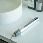 一見してドライヤーだとわからない見た目が特徴。長さ約277mm、直径38.5mmのスリムデザインに加え、極めつけは298gという軽量性を誇る。髪の短い男性にとって、正直面倒なドライヤータイムも、軽くて自由な「baton」なら、煩わしい思いをしなくて済むはずだ。