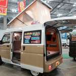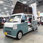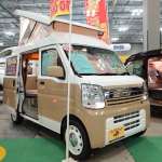 スズキ エブリイをベースにポップアップルーフを架装したスマイルファクトリーのルアナ。注目すべきはその開閉方法。一般的なポップアップルーフは前または後ろが上に持ち上がる構造になっています。ルアナのポップアップルーフはサイドが上に持ち上がる国内初のシステムです。