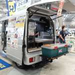 ベース車両はスズキ エブリイ系とダイハツ ハイゼット系をチョイスでき、後席は最初から取り払って2人乗りに。助手席もシートバックを前に倒してテーブルとして使うことを前提にしています。