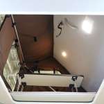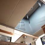 ポップアップルーフを展開してルーフ部のベッドを収納すれば天井が高くなり、大人も車内で立つことができる。これもポップアップルーフ車のメリットです。この際、前開き・後ろ開きタイプだと、高さがあるのは片側だけなので、実際に車内で立てるスペースには限りがあります。このルアナのような横開きだと、前から後ろまで一定の高さがあるので、車内のどの場所でも立つことができます。