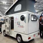 ベース車両はダイハツ ハイゼットトラックで、荷台に居住スペースを架装しています。ただ、軽自動車ベースでキャブコンを製作する場合、ひとつ大きな問題があります。それは軽規格で全高が2m以下と決められていること。そこでインディ108は居住スペースにポップアップルーフを設置することで、全高を1990mmに抑えています。目的地についてポップアップルーフを展開すれば、高さのある室内を立って移動が可能になります。