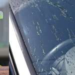 ▲水滴がスーッと流れ落ちるのは摩擦抵抗が減っている証。水滴が小さいため走行風で吹き飛ばせる