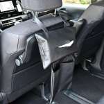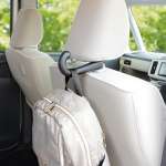 ヘッドレストシャフトに取り付けるフックで、10kgまでの小物を掛けられる。前方に回転させれば前席に座る人が利用でき、横に向ければ未使用時に邪魔にならないようになっている。