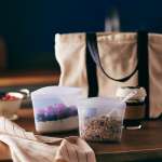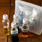 漏れると散々な目にあうのがオイルや醤油などの液体調味料。A-sukeさんは小さなペットボトルに詰め替えたうえで、スタッシャーのシリコーン容器にまとめて液漏れを徹底予防。