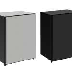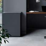 キッチンだけではなく、寝室やデスク周りに置くことも考えた“ステルス”冷蔵庫。冷蔵庫下部に放熱機構を設けることで、壁にピタッとつけての設置が可能。サイドボードのように存在しつつ、容量72Lと飲み物などをたっぷり冷却する。