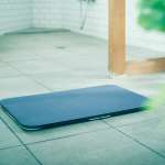 風呂上がり、珪藻土のマット上で足を拭いている間に体重を計測する、ステルスすぎる体重計。マットに体重表示なく、数値は接続したアプリに自動で転送され、その変化やBMIなどが管理される、
