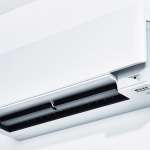 ▲多機能型エアコンなのに薄さわずか18.5cm。「寒すぎ」「暑すぎ」を検知する室温パトロール機能があり、季節を問わず活躍する