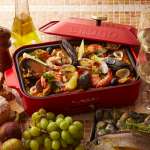 “オシャレなホットプレート”の先駆け的存在。あえて出しておきたくなるカラーとデザインは、テーブル上を彩る。W37.5×D23.5cmのサイズは、2〜3人の料理に最適で、テーブル上でも邪魔にならない。