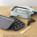 ▲付属品は平面プレート、たこ焼きプレート、フタ、木べらなど。フタつきのため、蒸し料理にも対応する