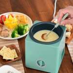 チーズフォンデュ、チョコレートフォンデュなど、食事からスイーツまで作れるブロック型の調理器具。フォークやお玉、ヘラ、流し型などが付属し、内部の鍋は取り外して洗える。