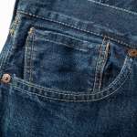 ▲露出していたヒップポケットのリベットは隠しリベットに。大きくラウンドしたアーキュエイトステッチも見もの