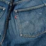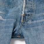 ▲洗濯と乾燥を繰り返して大きく縮み、今やわずかに残存しているのみの革パッチ。値段を左右する評価ポイント