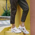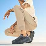 サステナブル素材を採用し、3つのパーツで構成されたシンプルなスリッポン。靴下のような伸縮性を持つフルニットソックスのアッパーを採用しており、足をやわらかく包み込む。ヒールプルタブ付きで脱ぎ履きも簡単。