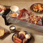 網をセットすれば焼き鳥、プレートをセットすれば焼肉と、テーブル上で両方が楽しめるグリル。横幅が約31.5cmと小型なので、卓上でも邪魔にならず温かい料理が楽しめる。焼肉プレートはフッ素樹脂加工で焦げつきにくいのもうれしい