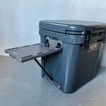 最強クーラーボックスと名高いイエティ「ローディー24」用カスタムパーツ。硬派さが増すと同時に、アルデバラン「EDGE STAND」のポールで支えればバタフライ天板となる優れものだ。