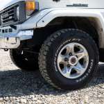 ホイールは純正、タイヤはトーヨータイヤのオープンカントリー。未舗装の悪路であっても問題なく進むことが可能だ。