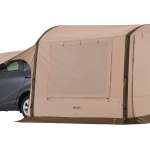 車中泊の際にクルマと連結させて、簡単、手軽にリビングスペースを確保できるシェルター。本体は撥水・防水・難燃・紫外線カット加工が施されている。