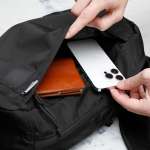 ▲フロント部分が2重構造になっていて、左右それぞれから別のポケットにアクセスできる。モノの仕分けにも便利だ