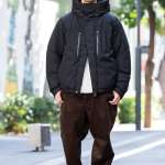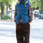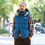 ▲ダウンジャケット×コーデュロイパンツという古典的アメカジコンビも、シルエット次第でストリートな印象に変わる/ザ・ノース・フェイスのアウター:12万1000円、ザ・ノース・フェイス パープルレーベルのトップス:1万8700円、ボトムス:2万5300円(すべてザ・ノース・フェイス ラボ)、ほか全て本人私物