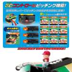 最新モデル「野球盤3Dエース スーパーコントロール」(9500円)は、かつてのアナログな野球盤とはイメージがガラリと変わった印象。液晶画面付きの電光掲示板を採用しており、スピードガン機能搭載により、投げた球速がその都度表示されるという仕組み。実況アナウンサーの音声も再生できて、臨場感を演出してくれます。