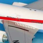 全長は36.95cmで、大型機ならではの迫力も十分。これを真鍮製メタルプレートを配した木製台座(付属)にディスプレイすれば高級感もアップし、存在感も際立ちまくり。普段どころか一生乗る機会がないであろう政府専用機が自室で飛んでいるなんて、ロマンを感じるなどと言ったら言い過ぎ?