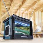 防塵・防水性能(IP64)を持つスピーカー。BluetoothのほかAUX IN端子も備えており、ACアダプタも付属。連続使用時間はBluetoothで約37時間(BL1860Bバッテリー使用時)。実用最大出力は、3.5W(10.8V)、6W(14.4V)、10W(18V)