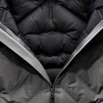 ▲撥水表地・防水透湿素材・裏地の3レイヤー構造。雨風を防ぎ、羽毛と温かい空気を守る