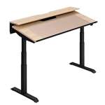 メイン天板を傾斜させることでノートPCや筆記作業など、それぞれのシーンで最適な姿勢にアジャストさせる。水平天板には筆記用具やカップを置いておける工夫の施された一台。オプションも豊富で自分の思うままにデスクをカスタムして、理想の環境で仕事に取り組める。