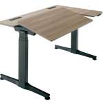 天板下の上下ボタンで高さを65cm~125cmの範囲で調整する。押し始めはゆっくり、その後スピードアップしてなめらかに昇降する。L型タイプやマネージャーデスクなど、豊富なラインアップを取り揃えているので、オフィスはもちろん自宅のどんな間取りにも対応する。
