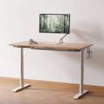 天然木を生かしたクリア塗装の天板と、FlexiSpot E8を組み合わせた昇降デスク。ラウンド形状のFlexiSpot E8は63~128cmの範囲で無段階に調整可能。天然木それぞれの個性を楽しめるナチュラルな見た目と、天板裏の拡張機構“Desk Modular System”を有した機能的な一台。