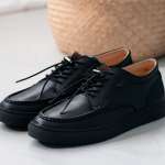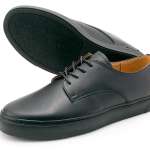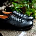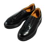 外羽根のプレーントゥタイプのレザーアッパーに、ビブラムカップソールを採用したスニーカー。インソールは低反発と高反発素材を組み合わせており、見た目と履き心地の良さを両立している。ソール交換も可能。