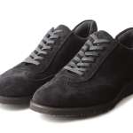 革靴用ラストをドレススニーカー用に改良し、上品なスタイルを実現したスエードモデル。スリットの入ったアウトソールは軽量で高い屈曲性があり、柔らかい履き心地を楽しめる。インソールと履き口もソフト。