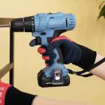 DIYにおける木材・プラスチックなどの穴あけに最適な充電式のドリルドライバー。最大トルクは25N•mで、速度も低速・高速の2段階で切り替え可能。ビット(ドリル刃)は直径0.8〜10mmのものに対応する。LEDライト付き。
