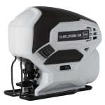 白色LEDライトが切断面を明るく照らす、作業性に優れたジグソー。本体横のダイヤルで切断速度も調整できる。木工用曲線鋸刃、木工用高速切断鋸刃、軟鉄用鋸刃が付属。