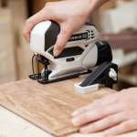 直線に加え、曲線もカットでき小回りが効くのがジグソー。大きい板材や厚みのあるものは丸のこ、薄く小さめの板材をカットするときやデザインカットする際はジグゾーと、使い分けるのが一般的。