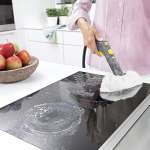 ▲安定して噴出されるパワフルなスチームでカビやウイルスを99.99%除菌・除去。キッチン周りにも安心して使用できる