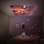 ▲バッテリーを内蔵しているので、ベッドサイドに置けば天井投影もすることもできる