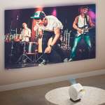 モバイルバッテリーで駆動するモデル。1920×1080pixelのフルHDで最大200インチまでの画面を楽しめる。Dolby Audioと互換性のある8Wスピーカー2基で高音質サウンドも提供してくれる。別売スタンドで天井投影も可能だ。