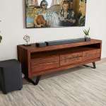 Dolby AtmosとDTS:Xに対応。大型化するテレビに合わせて、バー1本でサラウンド音場を拡大する技術が込められている。別売のリアスピーカー(写真後ろ)と組み合わせると、さらに立体的な音響になる。