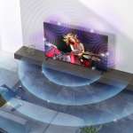画面を曲げられるだけでなく、高さと角度の調整にも対応。ゲームをプレイする際のベストポジションに画面をセッティングできる。40Wのフロントスピーカーと、映像に合わせて音が360度移動するDolby Atmos機能によって生み出されるサウンドの迫力は圧巻。