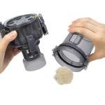 付属するSubmarineウェットローラーヘッドは、ローラー全体に均等に配置した8つのウォータージェットから毎分18mlの水が正確に供給される。そのため、ローラーの幅いっぱいに適量の水を行き渡らせ、こぼした液体や皮脂などの頑固な汚れから、食べこぼしなどの小さな乾いたゴミまでを効率的に取り除くことができる。通常の吸引清掃やハンディでも使用可能。