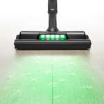 ▲緑色のLEDライトを採用。合計5灯の光を効率的に集める設計のレンズで前方を照らし、ゴミを浮かび上がらせる
