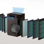 ▲一体型になった3つのフィルターで汚染物質を空気中から除去する。フィルターは使い捨てで、1年おきに取り替えるだけでメンテナンスの手間がかからない