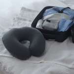 飛行機や電車、バスなどの長距離移動時にあると便利なネックピローだが、必要なタイミングでサッと使えないと意味がない。その点こちらは、ひと息で膨らますことができるので非常にクイック。首を包みこむ形状で頭をしっかりと支え、さらに空気の量で好みの固さに調整可能。片手サイズに畳めるため、荷物にならないのもポイントだ。