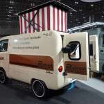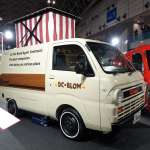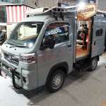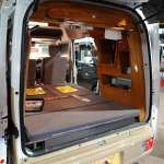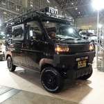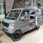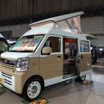 軽キャンピングカーの製造・販売を行うスマイルファクトリーが、インテリアの利便性だけでなくポップなスタイルを与えたエブリイベースの軽キャンピングカーを展示していました。