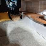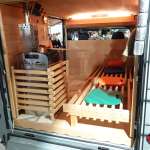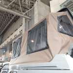 ポップアップルーフがついているので、車内を広く使うことが可能。しかもこのポップアップルーフはボディサイドが上に上がるタイプなので、車内ほぼ全体の室内高が上がります。最上部までは約2mあるので、身長が高い人でも車内で立って着替えられますよ。