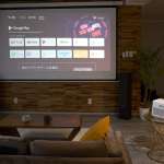 3色レーザー光源を搭載し、色再現性に優れた4Kモデル。明るさは2200CVIAルーメン。左右上下に回転するジンバルスタンドを備え、天井投影にも対応する。Android TVを搭載し、各種アプリに対応。10W×2のスピーカーを内蔵する。