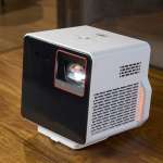 135°の範囲で投影角度を調整でき、天井にも映像を映し出せるフルHDモデル。付属のAndroid TV搭載ドングルでNetflixなどを視聴できる。バッテリーを内蔵し、動画は最大180分間の再生が可能。2.1chスピーカーも搭載。