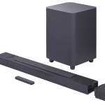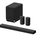 本体から分離するリアスピーカーとサブウーファーを備えた5.1.2chモデル。本体のバースピーカーには、高さ方向の空間を再現するための天井反射スピーカーを内蔵し、単体でのリアルなサラウンドを実現。Dolby Atmosにも対応する。