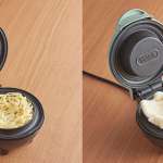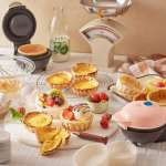 ミニココットサイズの食べられるお皿を作れる便利な調理家電。使い方は簡単で食材を挟んで焼くだけ。食パンを使ってキッシュに、ギョウザの皮を使ってタルトの生地に、お餅を使ってデザートのお皿に、など使える食材も豊富。アイデア次第で様々なメニューが作れる。